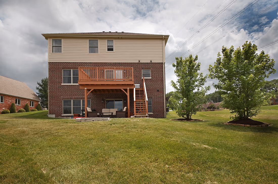 A custom brick home built for everyday comfort and long term durability. The design features a two story brick exterior, a finished walkout lower level, and a multi level outdoor living setup with a covered patio and deck. Interior spaces were completed with clean, bright finishes to keep the home functional and timeless.